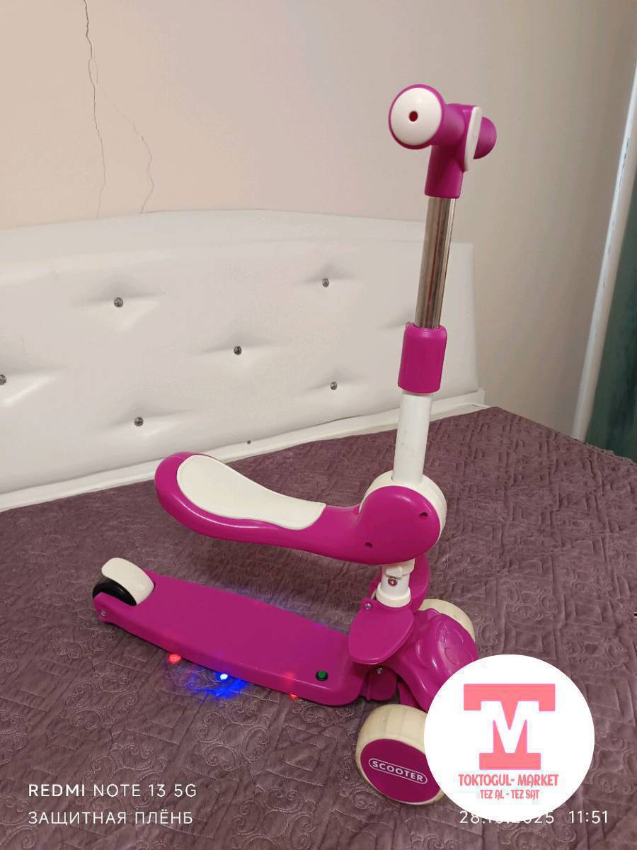 самакат сатылат колдонулбаган жаны музыкасы бар качество сонун калын тепкенде донгологунон да жарыктар чыгат 2600сом 100кг смело которот