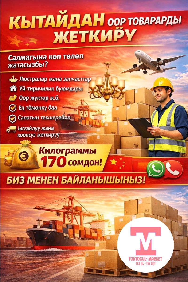 📦 КЫТАЙДАН ООР ТОВАРЛАРДЫ ЖЕТКИРҮҮ Кытайдан товар алууда салмагы оор болуп, 💸 кымбат доставка төлөп жатасызбы? Биз сизге жардам беребиз! 🤝 💡 Люстралар ⚙️ Запчасттар 🏠 Үй-тиричилик буюмдары 🧱 жана башка оор товарлар 👉 Баарын эң төмөнкү баада алып беребиз 👉 Салмагын оптималдаштырып, артыкча чыгымдан сактайбыз 👉 Товарды текшерип, сапатына жооп беребиз ✅ 👉 Ыңгайлуу жана коопсуз жеткирүү 🚚🇨🇳 📲 Баасы, мөөнөтү жана толук маалымат үчүн азыр эле биз менен байланышыңыз!