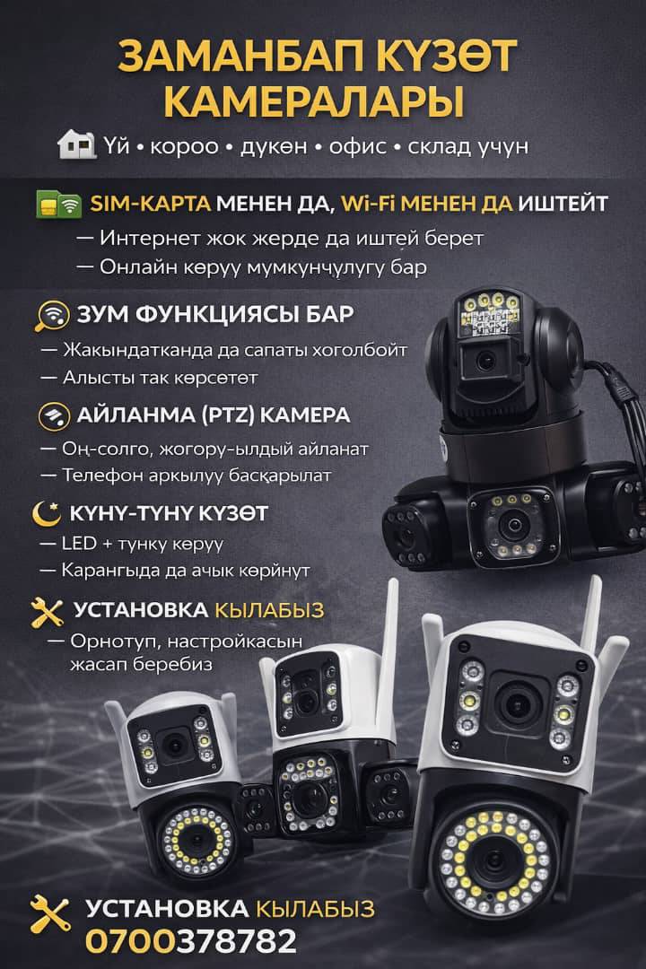 📹 КҮЗӨТ КАМЕРАЛАРЫН ОРНОТУП БЕРЕБИЗ! 🏠 Үй • короо • дүкөн • офис • склад үчүн 🔒 Коопсуздукка ишенимдүү чечим ✔️ Wi-Fi жана SIM-карта менен иштеген камералар ✔️ Айланма (PTZ), зум менен камералар ✔️ Күнү-түнү иштейт, онлайн көрүү ✔️ Телефон аркылуу көзөмөл 🛠 УСТАНОВКА КЫЛАБЫЗ — Орнотуп, толук настройкасын жасап беребиз — Колдонууга даяр абалда тапшырабыз 📞 Байланыш үчүн: 0700 378 782