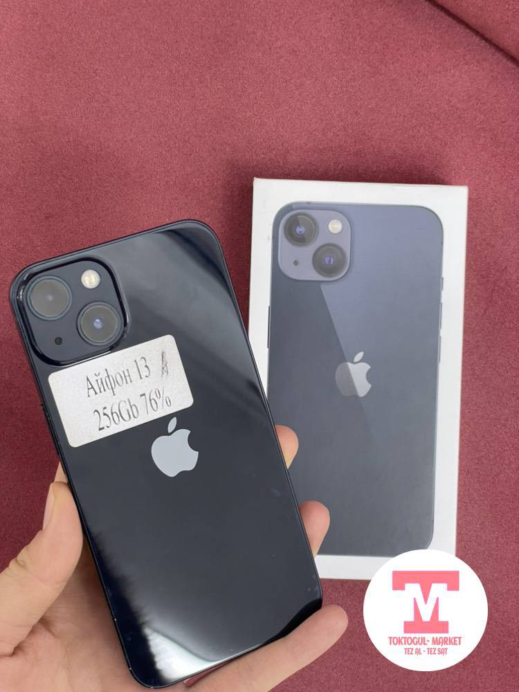 Айфон 13 сатылат коробкасы менен полный родной ичи ачылган эмес память 256гб АКБ 76% фейс трутон иштейт Комплекте чехол,стекло,шнур.