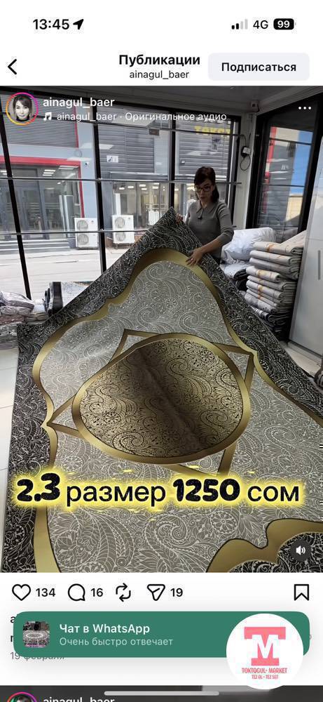 Килем палас керек болуп жатат. Колдонулган болсо арзан кылып берем деген жандарга кайрылам . 3.4 р