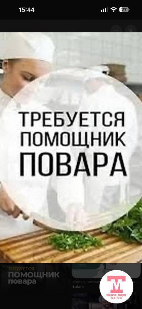Требуется помощник повара срочно( зарплата не обидеть)